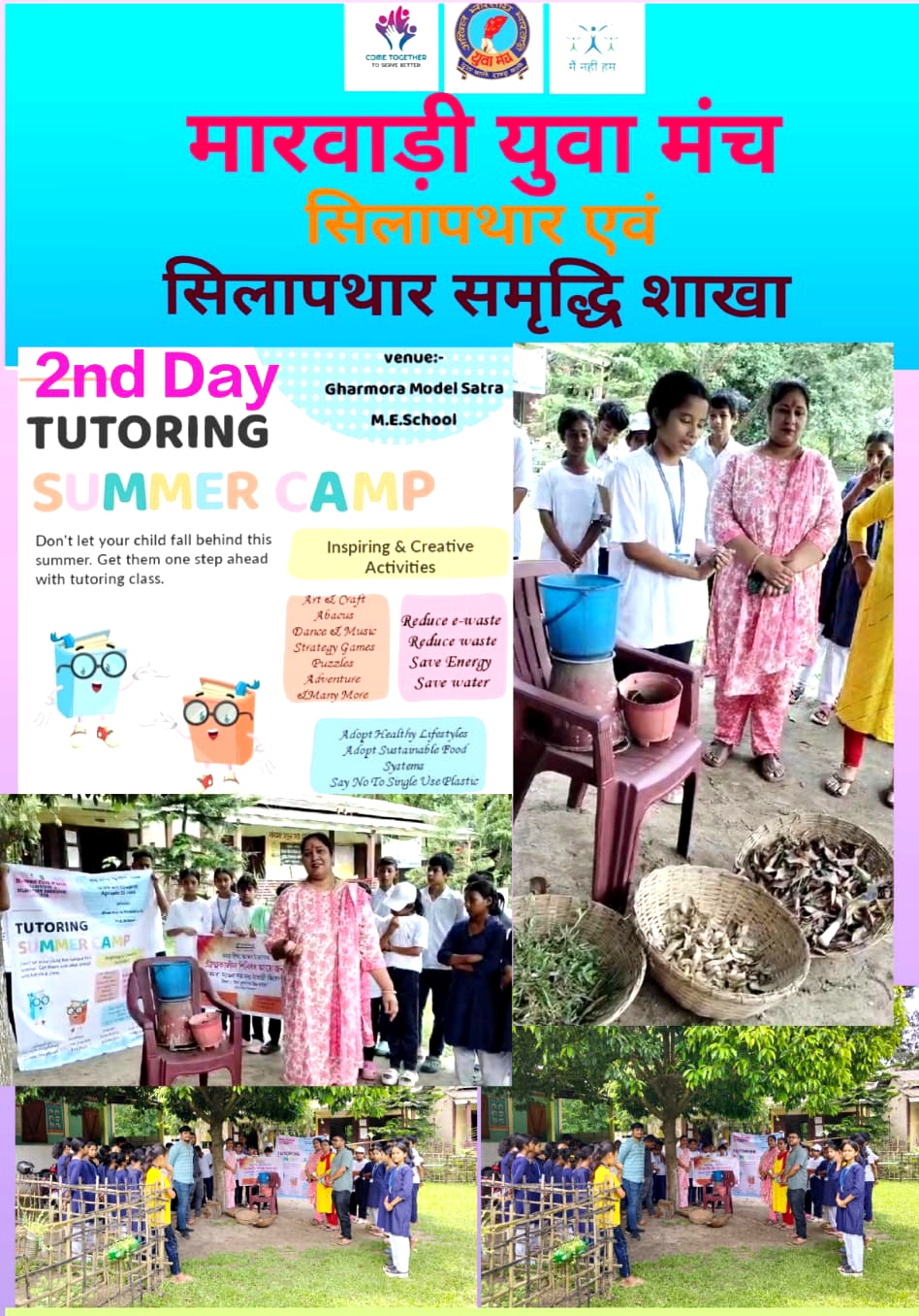 मारवाड़ी युवा मंच सिलापथार एवं सिलापथार समृद्धि शाखा द्वारा समृद्धि शाखा की संयोजिका सारिका अग्रवाल एवं इन्दु सिंघानिया के नेतृत्व में घारमारा मॉडल सत्र मध्य अंग्रेजी विद्यालय में सात दिवसीय ग्रीष्मकालीन ट्यूटोरियल शिविर ( समर कैंप ) आयोजित किया जा रहा है ।