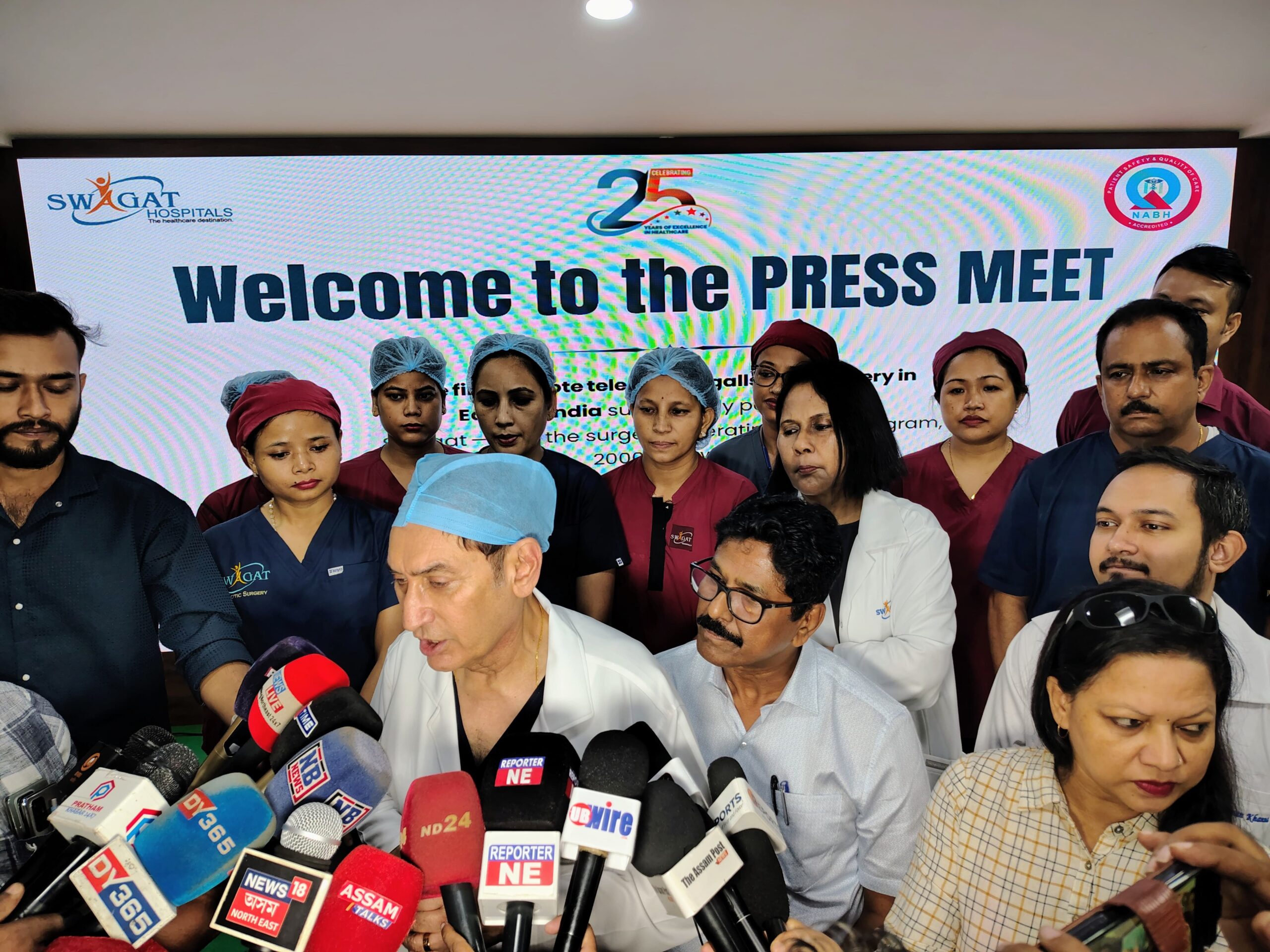 असम के गुवाहाटी स्थित स्वागत सुपर स्पेशियलिटी अस्पताल ने पूर्वोत्तर भारत में पहली बार सफलतापूर्वक गॉल ब्लैडर (पित्ताशय) निष्कासन शल्यक्रिया को अंजाम दिया। इसमें मेड-इन-इंडिया एसएसआई मास बोनोटिक सिस्टम का उपयोग कर गुवाहाटी के दो मरीजों की सर्जरी की गई, जो पूरी तरह सफल रही। लीड सर्जन प्रो. सुभाष खन्ना ने यह ऑपरेशन गुरुगाव से लगभग 1900 किलोमीटर दूर गुवाहाटी स्थित मरीजों पर नियंत्रण स्थापित करके किया। दोनों मरीज ऑपरेशन के बाद स्वस्थ हो गए हैं और 24 घंटे के भीतर ही दोनों को अस्पताल से छुट्टी देकर घर भेजा जा सका। यह उपलब्धि चिकित्सा और तकनीकी विशेषज्ञों की टीम द्वारा एकजुट प्रयास का परिणाम है। गुरुगाव से अभिवेश के साथ गुवाहाटी के स्वागत अस्पताल के विनय हजारिका ने इस जटिल आईटी समन्वय का नेतृत्व किया। पूरे प्रक्रिया में एयरटेल ने उच्च गति कनेक्टिविटी सुनिश्चित की और मानक से कहीं बेहतर, मात्र 40 मिलीसेकंड का लो-लेटेंसी कनेक्शन उपलब्ध कराया गया।संपूर्ण सर्जरी के दौरान स्वागत अस्पताल के चिकित्सकों में डॉ. अविंदम बोरुआ, डॉ. प्रणव दास और डॉ. सुप्रिय चौधरी ने सहयोग प्रदान किया, जबकि एनेस्थीसिया का नेतृत्व डॉ. कणिनिका दास ने किया। इसके अतिरिक्त रोबोटिक क्लिनिकल टीम से विद्या देवी, अलबानीसा, बीना, लिपिका तथा बायोटेक्निशियन जिन्टू ने तकनीकी क्षेत्रों में सहयोग दिया।उल्लेखनीय है कि स्वागत अस्पताल की निदेशक प्रो. डॉ. स्वागता खन्ना ने भी इस संपूर्ण सर्जरी प्रक्रिया को गुरुग्राम से ही मॉनिटर और नियंत्रित किया।
