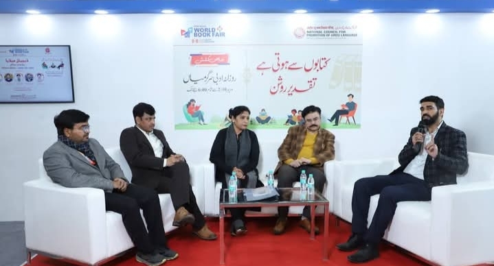 विश्व पुस्तक मेले में राष्ट्रीय उर्दू भाषा संवर्धन परिषद के स्टॉल पर दो महत्वपूर्ण साहित्यिक विषयों पर संगोष्ठियों का आयोजन किया गया। पहली संगोष्ठी ‘मेरा रचनात्मक सफ़र: लेखकों से मुलाक़ात’ शीर्षक से हुई, जिसमें प्रोफेसर तारिक छतारी, डॉ. खुर्शीद अक़रम और राजीव प्रकाश साहिर पैनलिस्ट के रूप में शामिल हुए, जबकि संगोष्ठी का संचालन मालिक अश्तर ने किया। प्रोफेसर तारिक छतारी ने अपने रचनात्मक सफ़र पर प्रकाश डालते हुए कहा कि उनका पारिवारिक वातावरण शैक्षणिक था और घर में पुस्तकों की उपलब्धता ने बचपन से ही उन्हें अध्ययन की ओर प्रेरित किया। उन्होंने कहा कि प्रारंभ से ही उनका मन रचनात्मक ढंग से सोचने का अभ्यस्त रहा, विभिन्न विषयों पर विचार आते रहे और इसी प्रक्रिया में संवाद उनके मन में आकार लेते गए। उन्होंने अपनी पहली कहानी की पृष्ठभूमि और प्रसिद्ध कथाकार सैयद मोहम्मद अशरफ़ द्वारा मिली हौसला-अफ़ज़ाई का भी रोचक उल्लेख किया। उनका कहना था कि सृजन एक सतत प्रक्रिया है, जो रचनाकार के मन में हर समय चलती रहती है। उन्होंने विज्ञान से उर्दू साहित्य की ओर अपने सफ़र और पत्रिकाओं में रचनाओं के प्रकाशन के अनुभव भी विस्तार से साझा किए।
