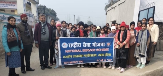 राजकीय स्नातकोत्तर महाविद्यालय,लक्सर, (ज़िला हरिद्वार) के छात्र छात्राओं द्वारा राष्ट्रीय सेवा योजना (एनएसएस) के शिविर के माध्यम से सुरक्षा और सेवा का भाव जगाते हुए जागरुक किया गया। दिनांक 16 जनवरी 2026 को राजकीय स्नातकोत्तर महाविद्यालय, लक्सर की राष्ट्रीय सेवा योजना (एनएसएस) इकाई द्वारा विषय “युवाओं हेतु पोषणयुक्त आहार एवं परिवहन सुरक्षा” पर एक दिवसीय शिविर का आयोजन करके इन विषयों पर सभी का ध्यान लाते हुए इन्हें अपनाने पर ज़ोर हूं गया। शिविर के अंतर्गत सर्वप्रथम डॉ. प्रीति शर्मा, सहायक प्राध्यापक गृह विज्ञान द्वारा पोषणयुक्त एवं संतुलित आहार विषय पर व्याख्यान प्रस्तुत किया गया। अपने व्याख्यान में उन्होंने युवाओं को प्राकृतिक आहार के महत्व, स्वस्थ खान-पान की आदतों तथा जंक फूड से होने वाले दुष्प्रभावों के बारे में जानकारी दी। इसके पश्चात एनएसएस के स्वयंसेवी अभिगृहित ग्राम भूरना लक्सर पहुँचे, जहाँ उन्होंने ग्रामीणों एवं युवाओं को पोषणयुक्त आहार एवं परिवहन सुरक्षा के प्रति जागरूक किया। स्वयंसेवियों ने घर-घर जाकर संवाद किया और प्रत्यक्ष संपर्क के माध्यम से यातायात नियमों के पालन, हेलमेट एवं सीट बेल्ट के उपयोग का संदेश दिया।